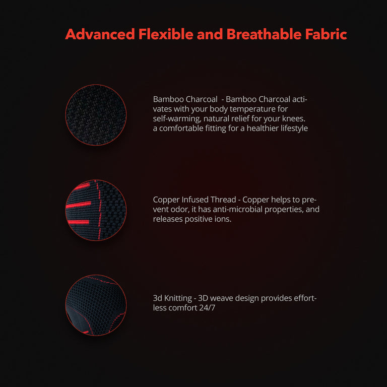 Bamboo Charcoal Copper Infused Compression Knee Sleeve (1 Pair)